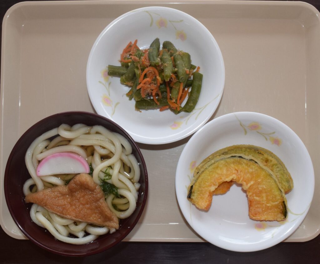 きつねうどん・南瓜天ぷら・いんげんおかか和え
