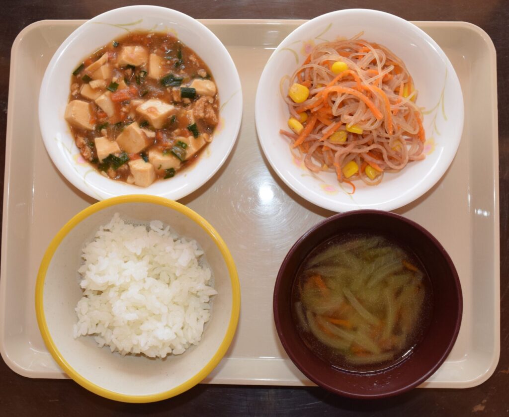 ご飯・麻婆豆腐・春雨中華和え・中華スープ
