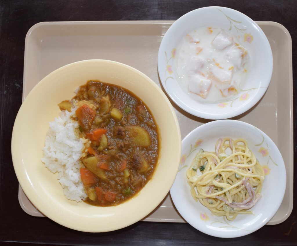 ビーフカレー・スパゲティサラダ・フルーツヨーグルト和え