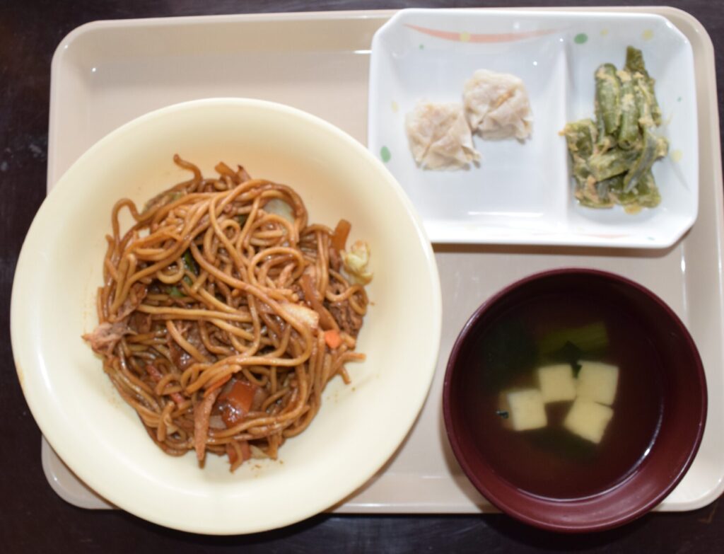 焼きそば・焼売・いんげんとツナのごま和え・中華スープ