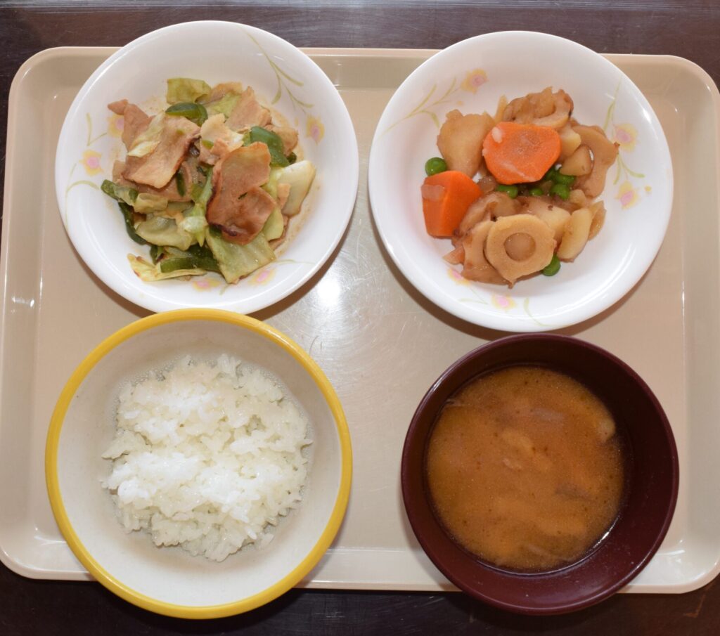 米飯・豚肉味噌炒め・じゃが芋旨煮・味噌汁
