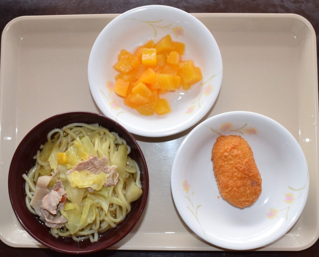 ラーメン・ミニコロッケ・果物缶(黄桃)