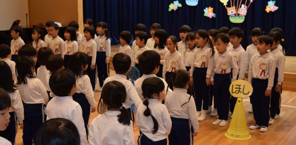 お別れ会では、体操を踊ったり手遊びをしたり、先生からの出し物を見たりして、楽しいひと時を過ぎしました。