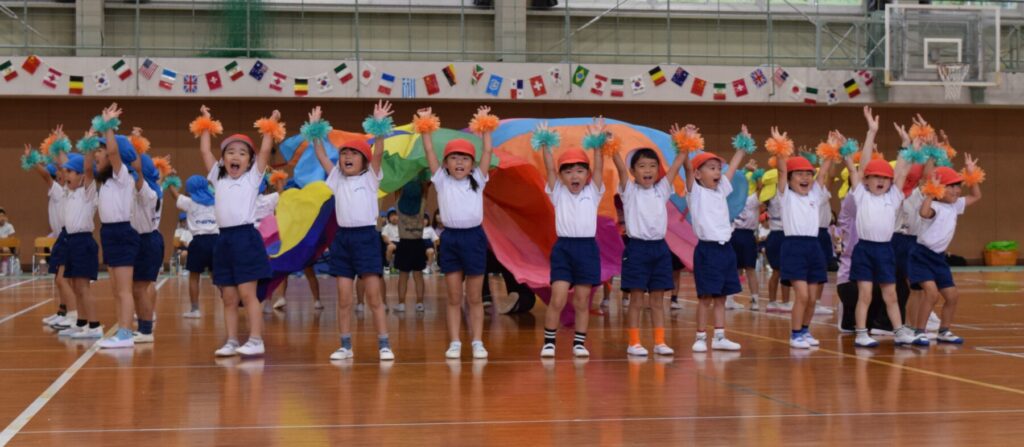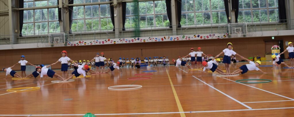 運動会を実施しました。雨天のため、日星高校の体育館で行いました。